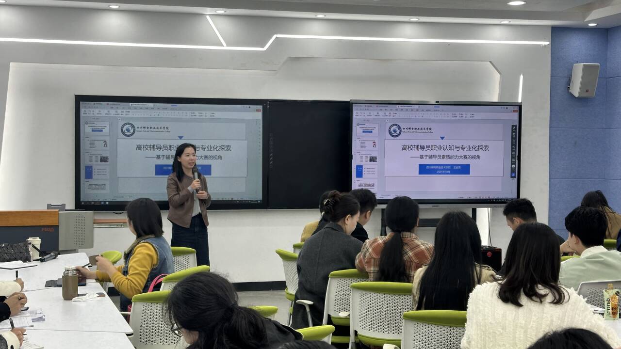 本次活动由学生工作部、学生处辅导员发展中心主办,“芯鲜雅语”辅导员工作室、“凝心曲”辅导员工作室”协办。特邀第八届全国高校辅导员素质能力大赛一等奖获得者、四川邮电职业技术学院的王丽英副教授担任主讲。学生处负责人、各二级学院(副)书记以及30名一线专职辅导员参加培训。学校党委常委、副校长陈冬冬出席并讲话。