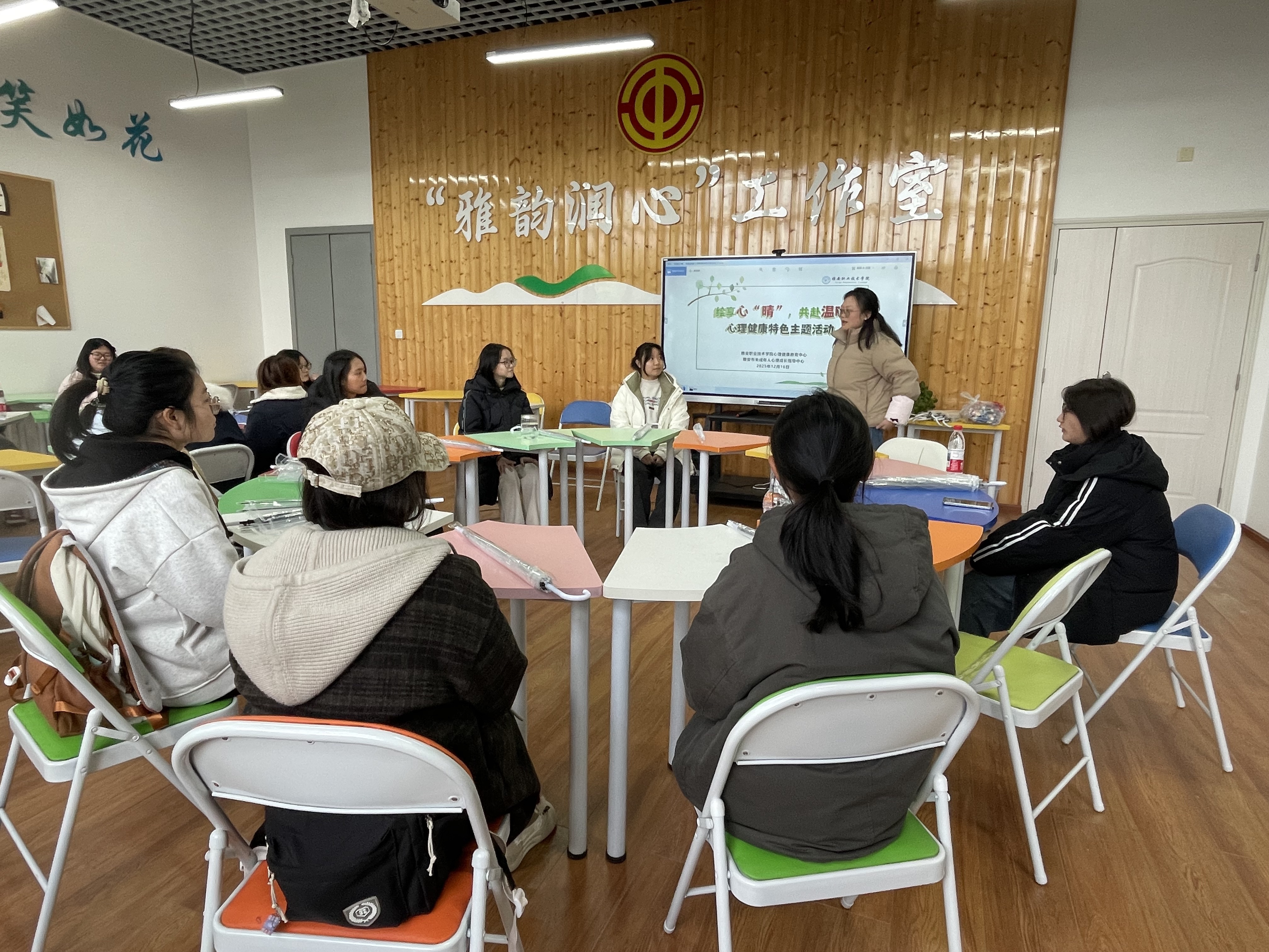 11-12月,心理健康教育中心牵头,联合各二级学院、心理协会围绕“暖阳在心,沐光而行”主题开展了“11·25”心理健康教育系列活动20场,涵盖讲座团辅、读书观影、叠纸猜曲等各具特色的主题活动,吸引学生2000余人次。下一步,心理健康教育中心将持续开展各类心理健康教育活动,进一步推进心理健康知识科普,培养健康向上的积极心态,营造心理健康良好氛围。