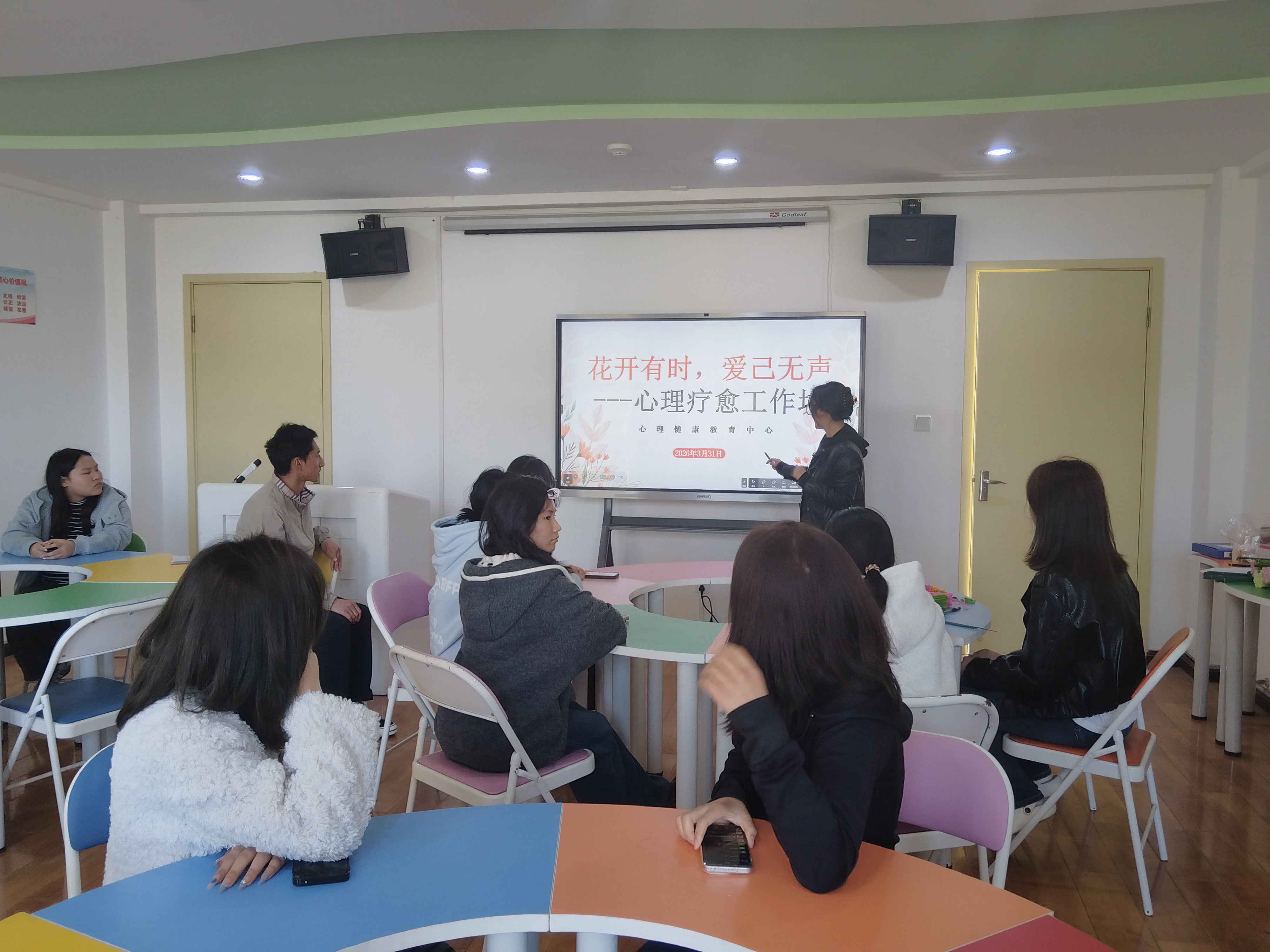 为关注大学生心理健康,推动传统文化与心理教育的深度融合,2026年3月31日下午14:30—17:30,由学校心理健康教育中心主办的“花开有时,爱己无声”心理疗愈工坊,于青年路校区、经开区校区同步开展,70余名学生参与活动。